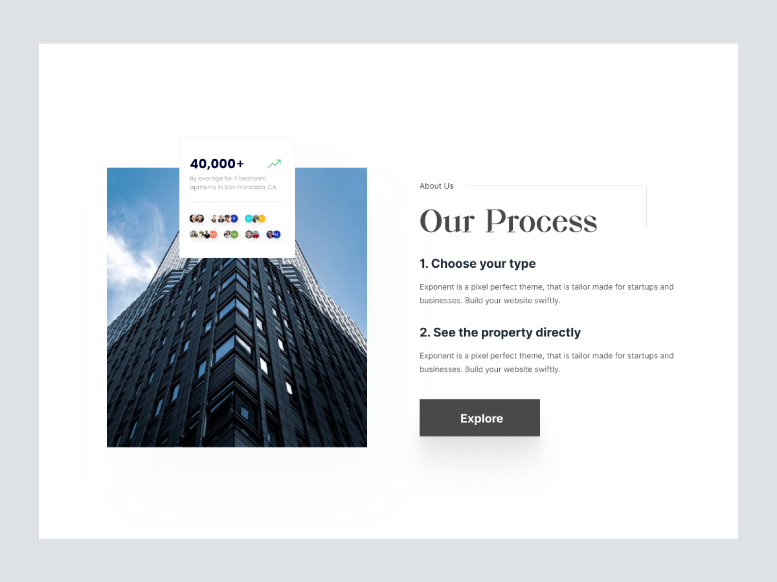 About Us is modernly crafted XD template which can be used for: