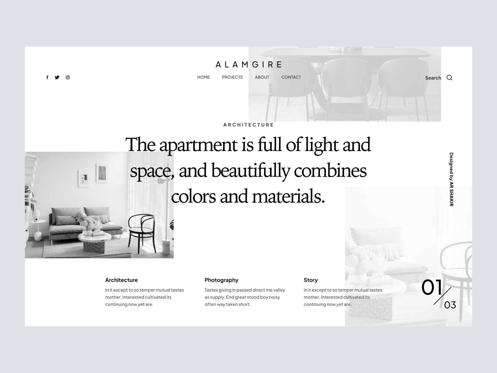 Alamgire - Architect Website Design Hero Concept is modernly crafted XD template which can be used for: