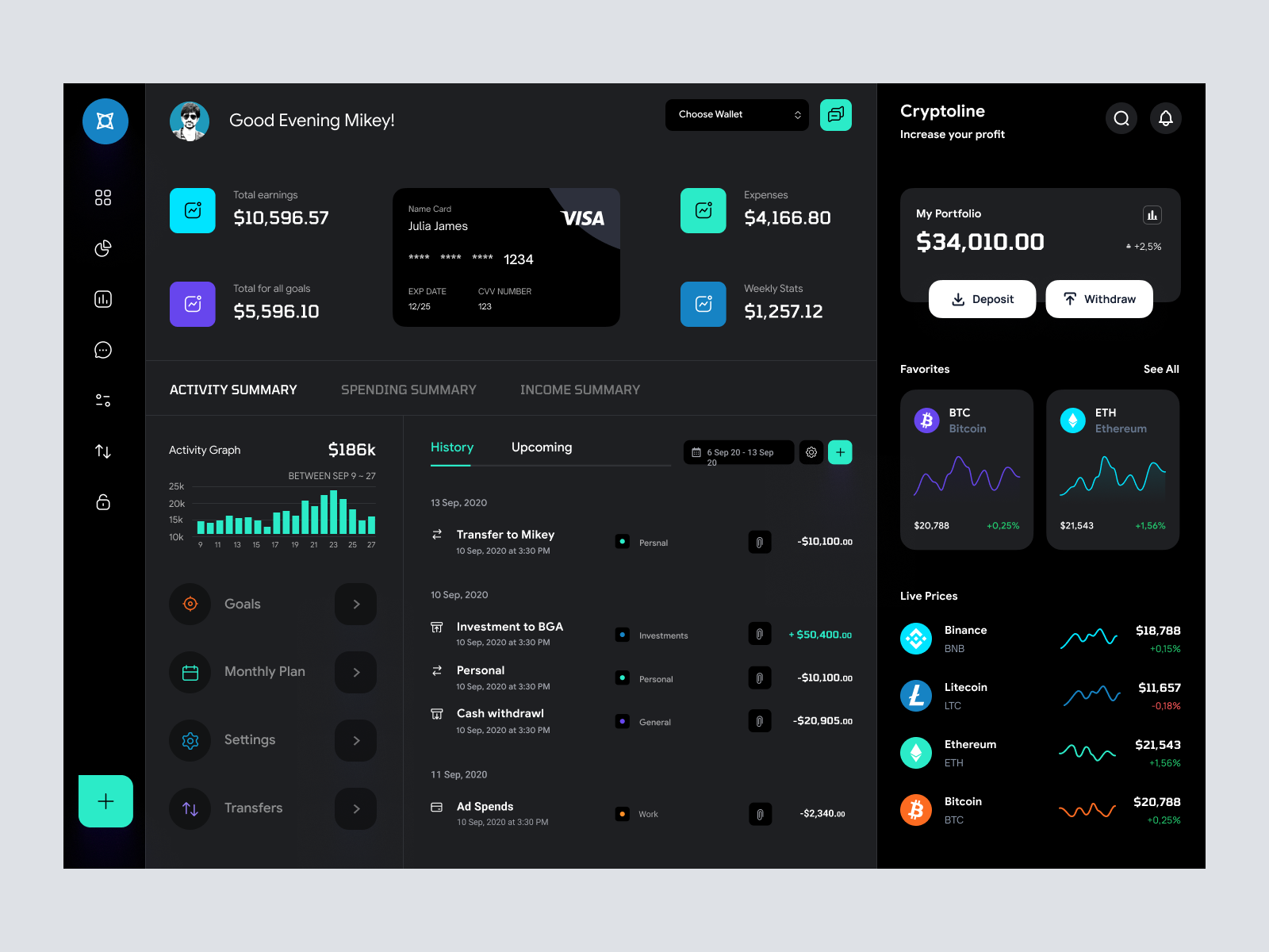 Crypto Dashboard UI Concept is modernly crafted XD template which can be used for:
