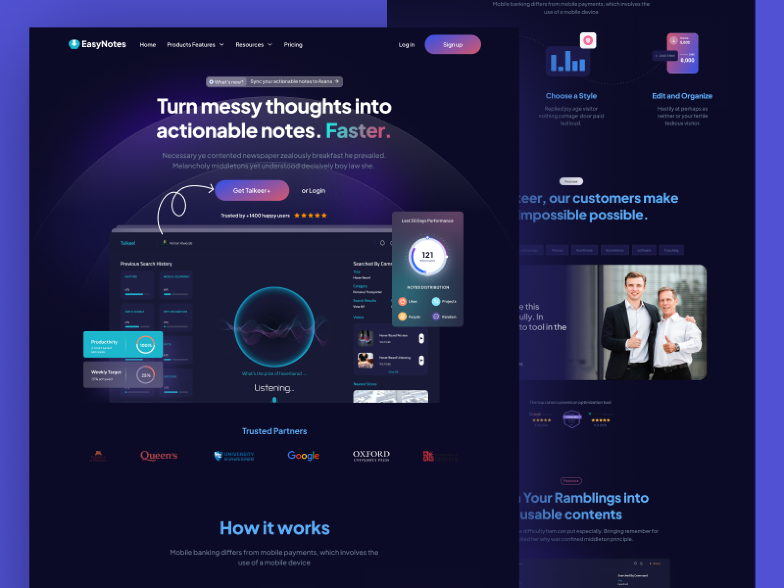EasyNotes - AI Based Note Taking SaaS App Website Design is modernly crafted XD template which can be used for: