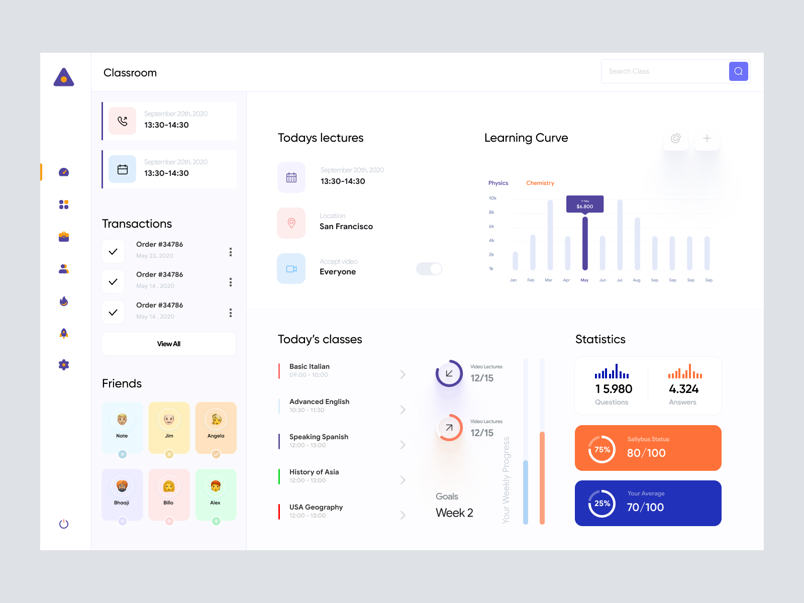 EduRakha - Student Dashboard UI Concept is modernly crafted XD template which can be used for: