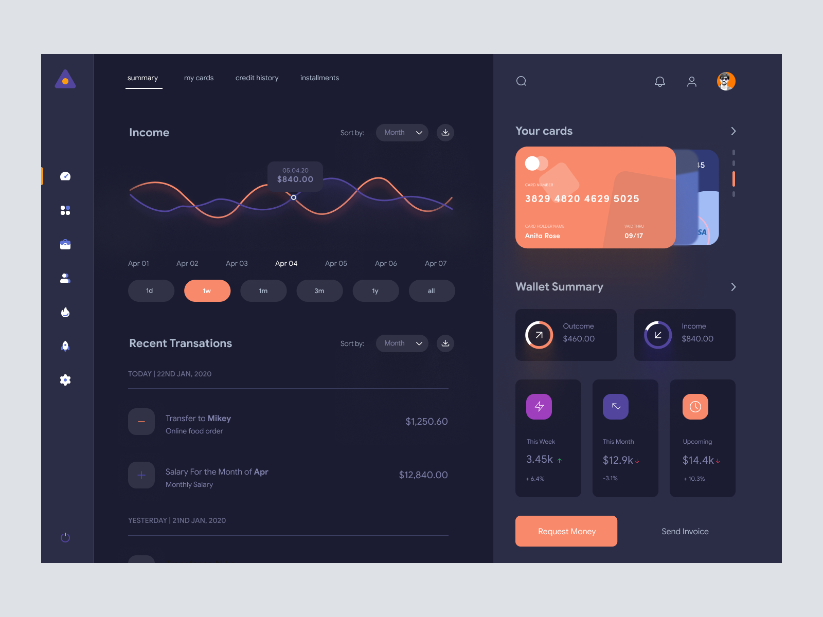 FinVerse - Finance Dashboard App UI Dark Layout is modernly crafted XD template which can be used for: