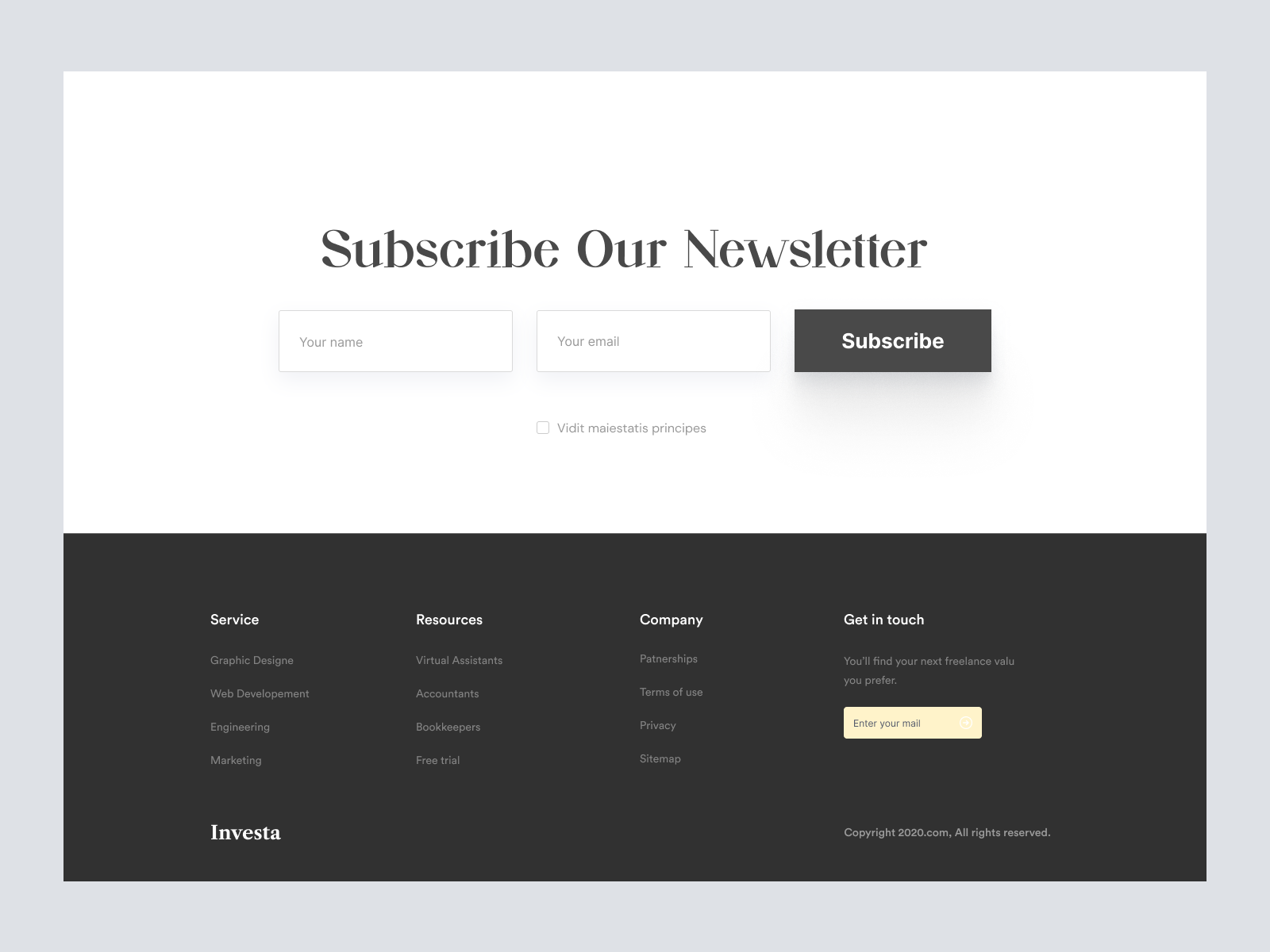 This comprehensive Newsletter featuring modular components will help you build better, consistent, high-quality design. Download free dashboard ui kit for banking. This free Newsletter is avaialble for Adobe XD. This modern and free Newsletter can be edited or customized in your favorite design tool ie Adobe XD.