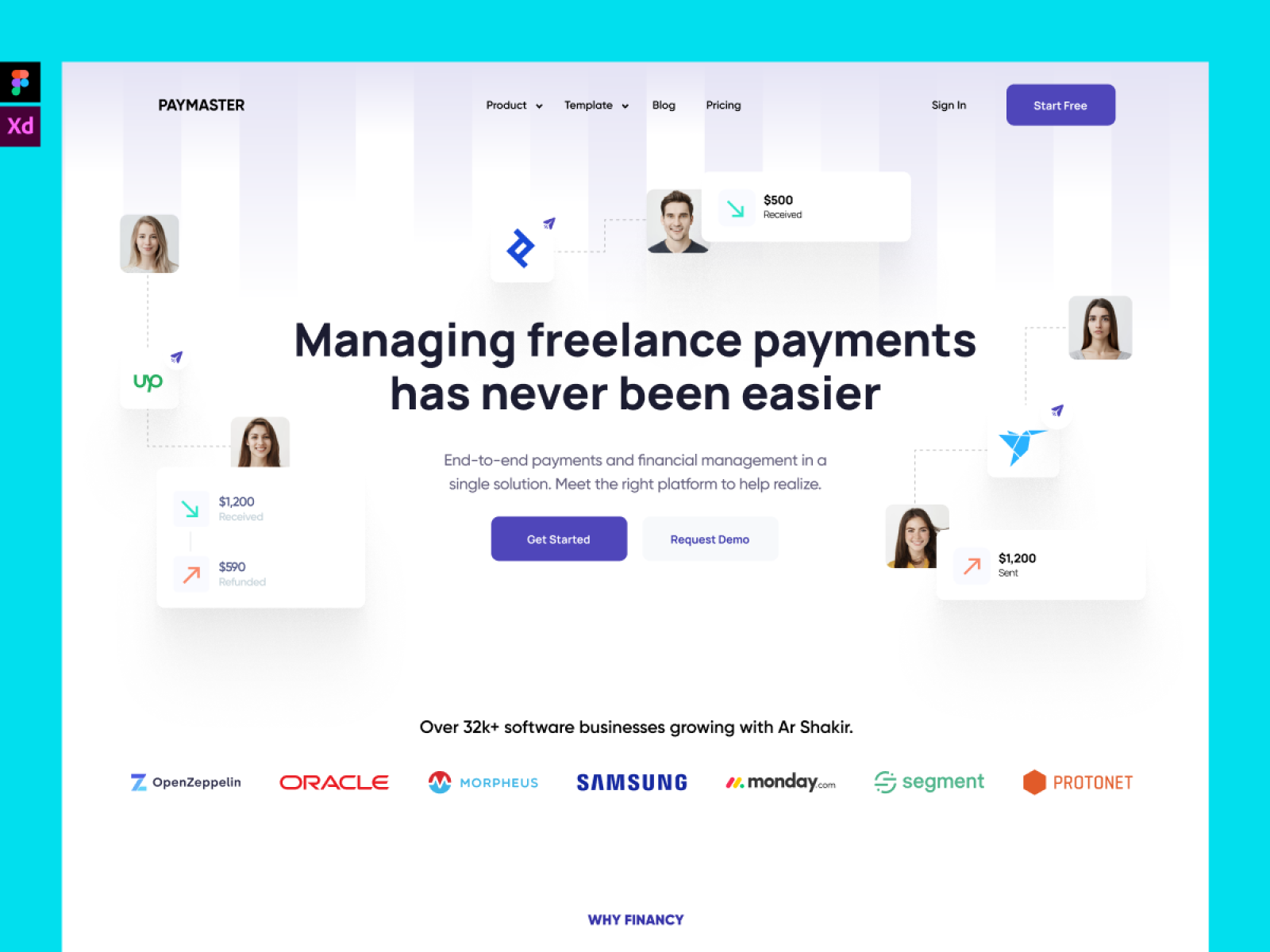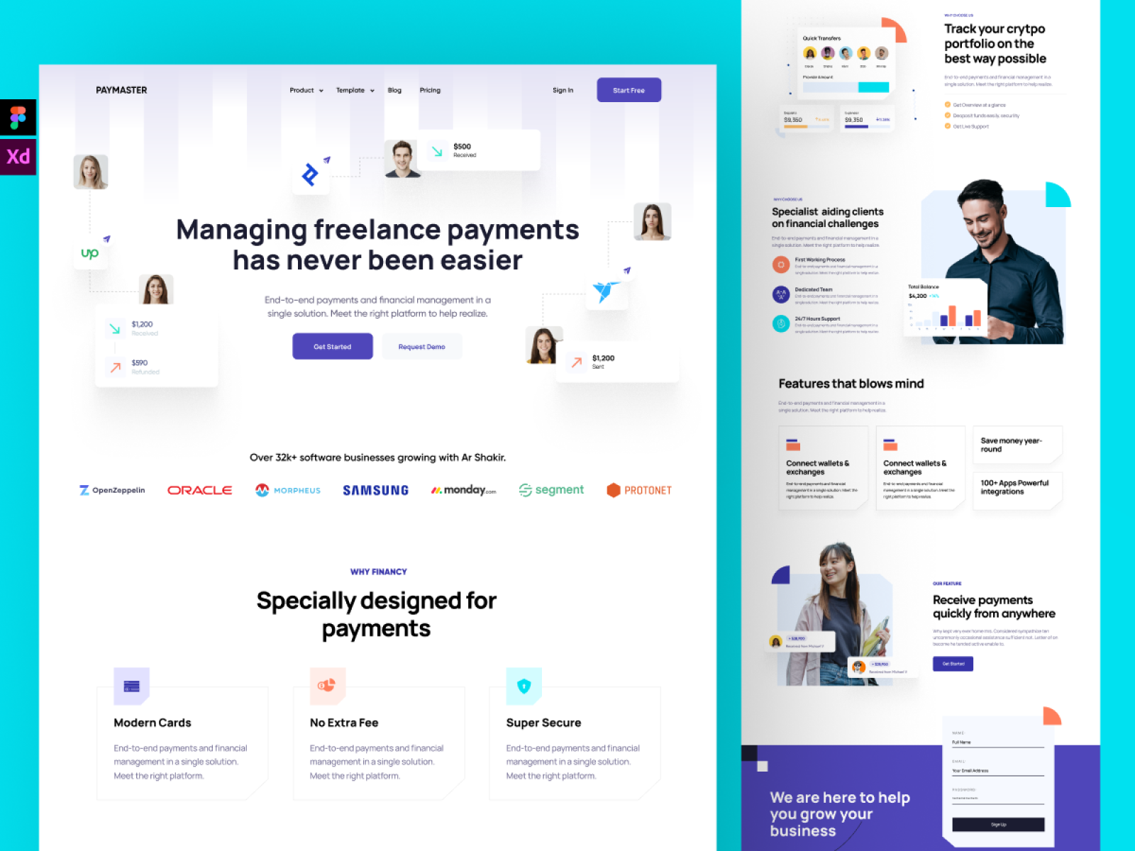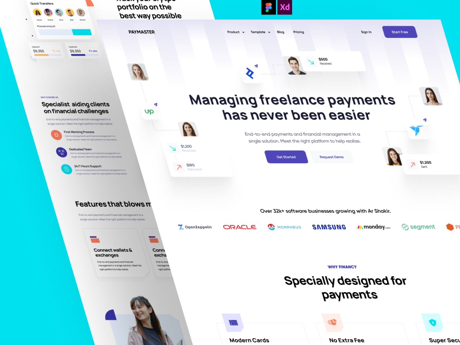 PayMaster - Finance Manager Saas App Landing Page is modernly crafted XD template which can be used for: