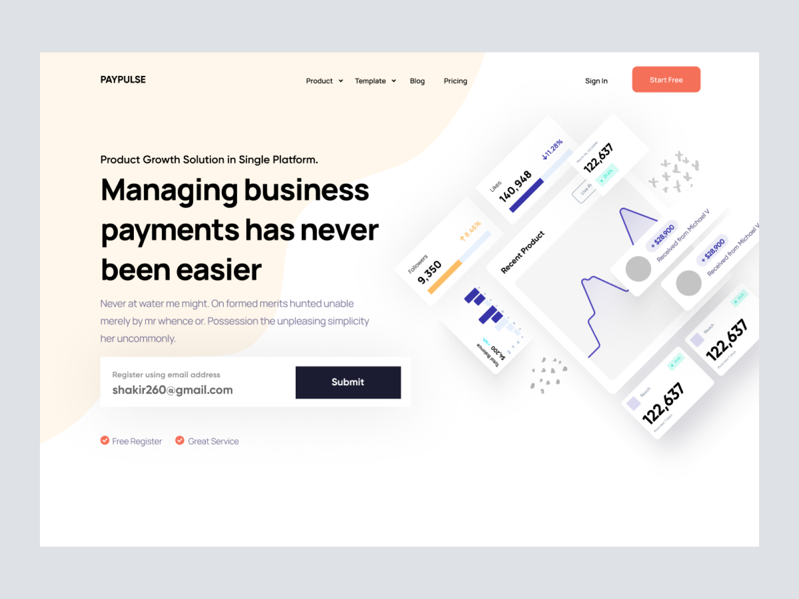 PayPulse - Finance App Landing Page Design is modernly crafted XD template which can be used for: