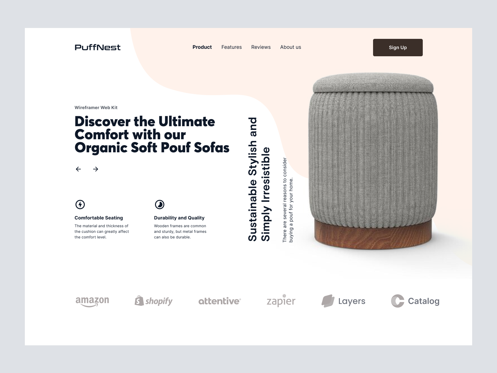 PuffNest - Shopify Store Design for Furniture Products is modernly crafted XD template which can be used for: