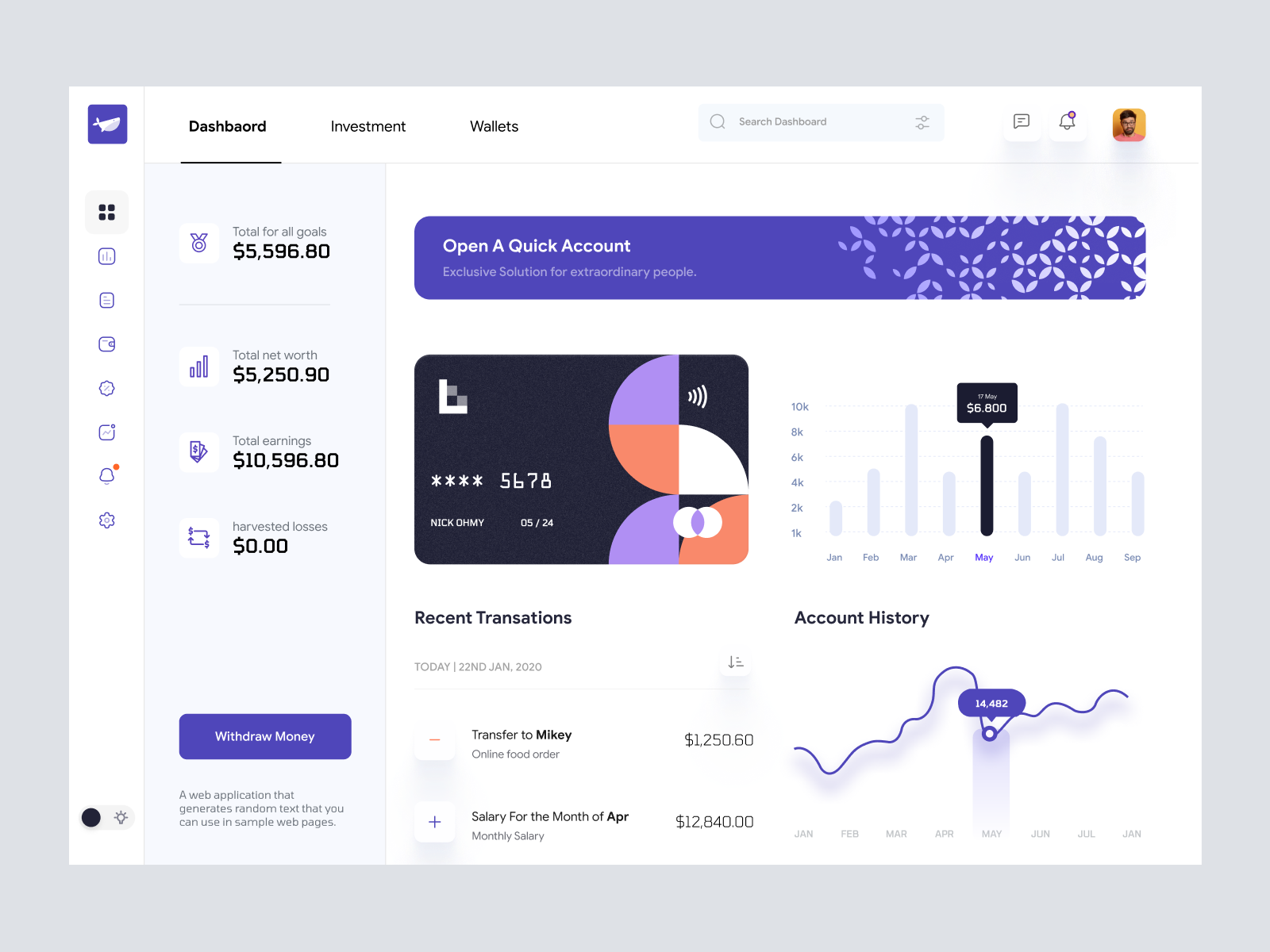 This comprehensive RW - Cryptocurrency Dashboard UI featuring modular components will help you build better, consistent, high-quality design. Download free dashboard ui kit for banking. This free RW - Cryptocurrency Dashboard UI is avaialble for Adobe XD. This modern and free RW - Cryptocurrency Dashboard UI can be edited or customized in your favorite design tool ie Adobe XD.