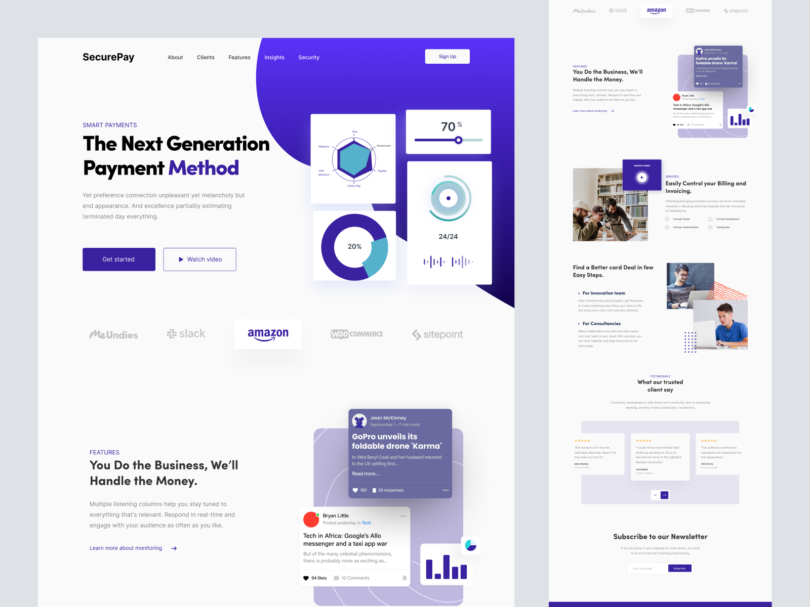 SecurePay - Fintech Company Website is modernly crafted XD template which can be used for: