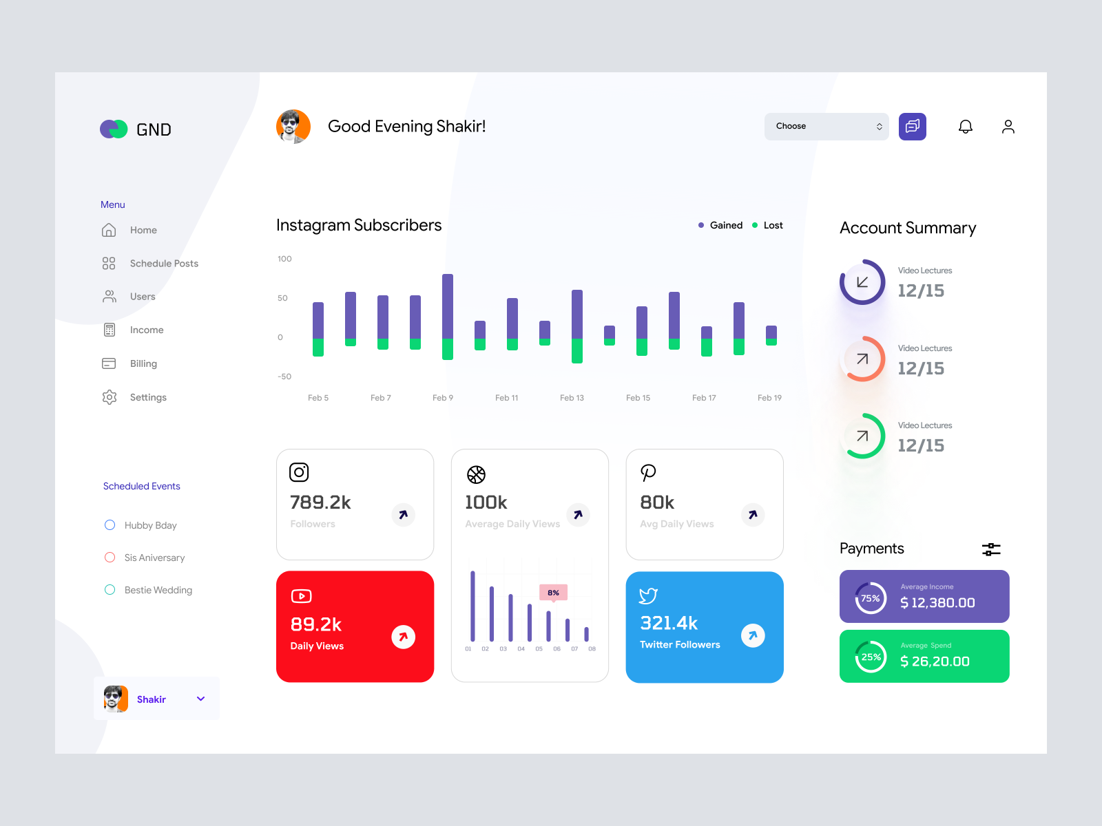 Social Media Influencer Dashboard UI is modernly crafted XD template which can be used for: