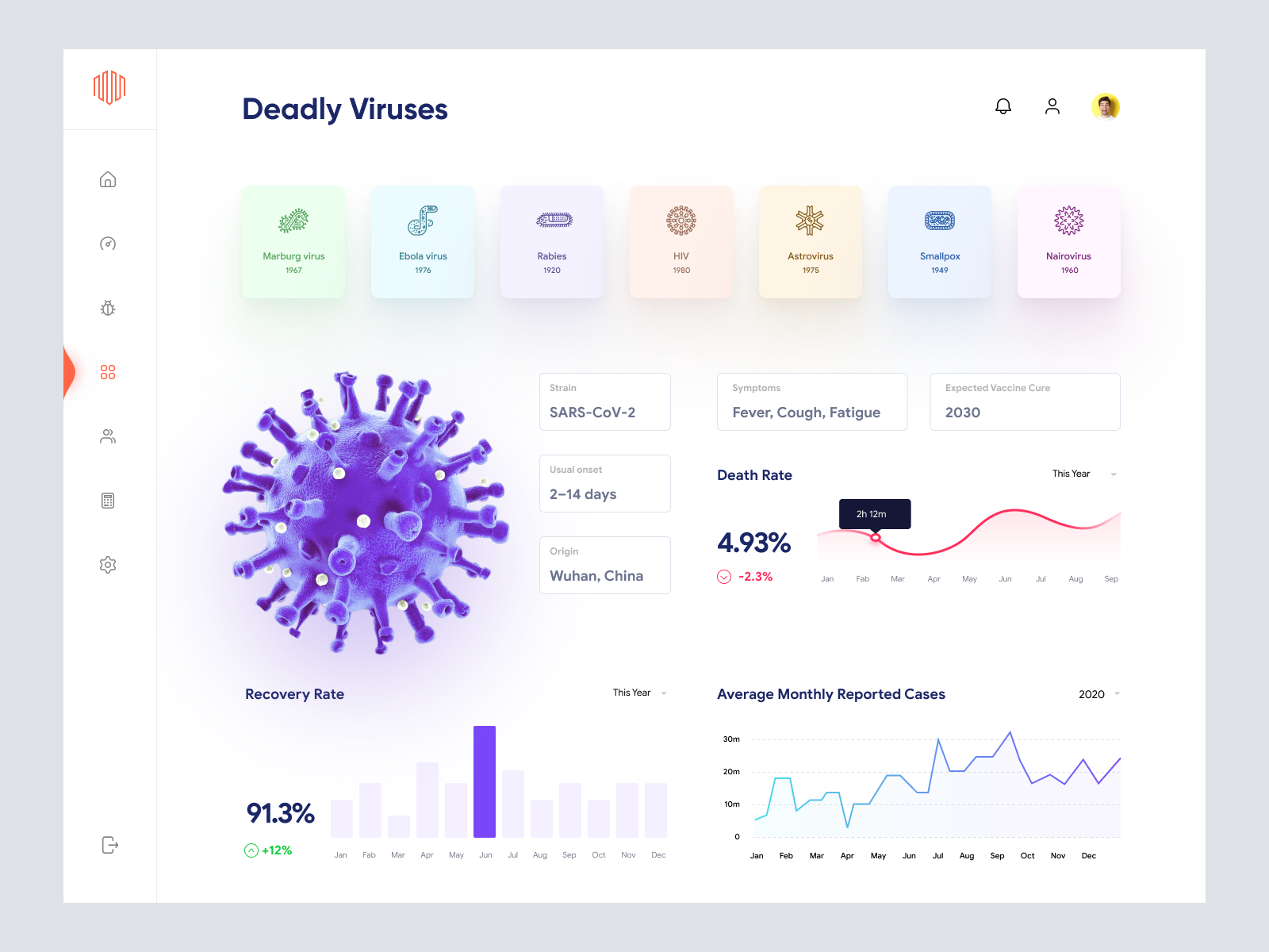 This comprehensive Viruses Information Dashboard UI featuring modular components will help you build better, consistent, high-quality design. Download free dashboard ui kit for banking. This free Viruses Information Dashboard UI is avaialble for Adobe XD. This modern and free Viruses Information Dashboard UI can be edited or customized in your favorite design tool ie Adobe XD.