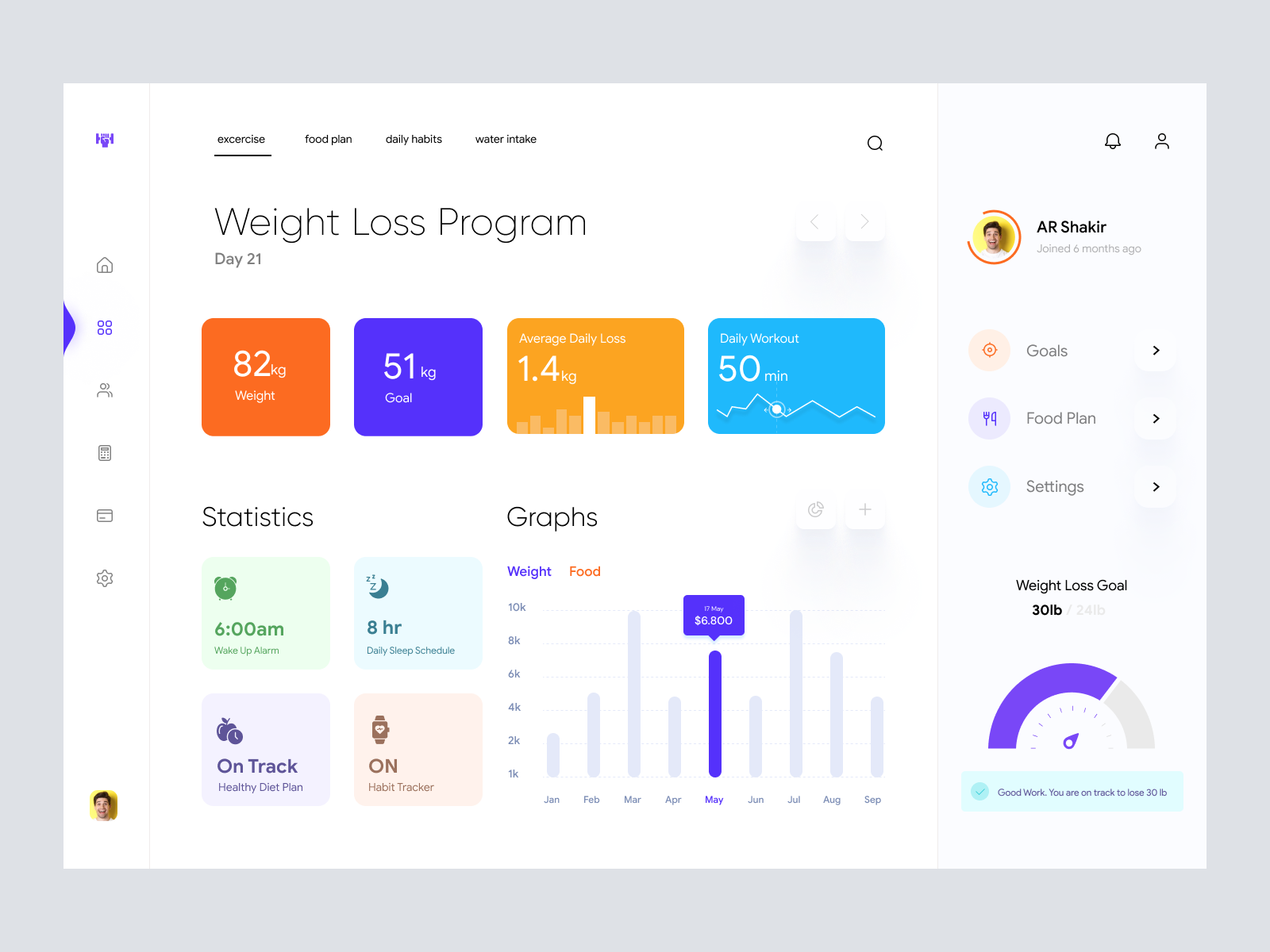 Weight Loss Program Dashboard UI is modernly crafted XD template which can be used for: